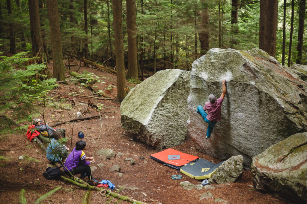 バンクーバーのクライミングジムHiveというボルダリングジムで日頃登っていれば、スコーミッシュに登りに行く人と友達になれる確率はかなり高いです。そういった人の車に乗せてもらい登りに行くのもあり。運転も1時間ほどで着くので気楽です。
